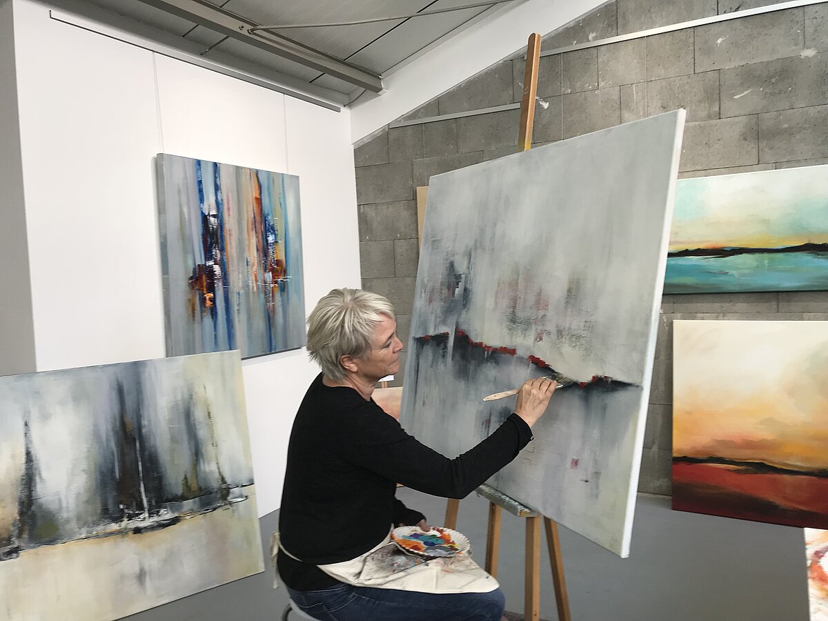 Beatrix Deus zeigt ein ‚Potpourri‘ ihrer abstrakten, großformatigen Arbeiten.
